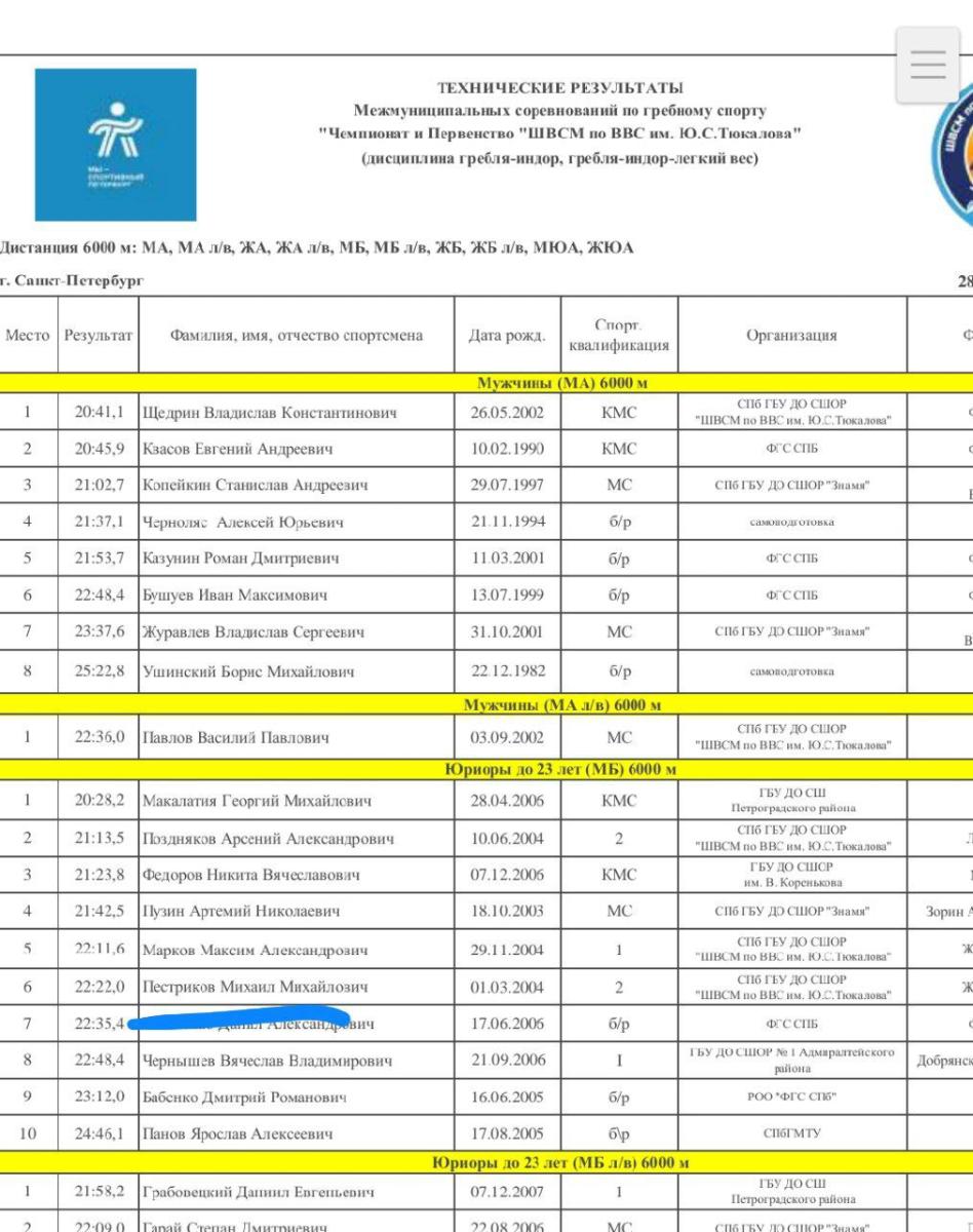 | - | 6375 | Пройдено 6375 метра(ов) | 19.11.2025 |