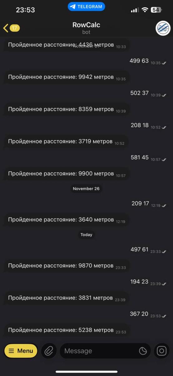 | - | 9870 | Пройдено 9870 метра(ов) | 29.11.2025 |