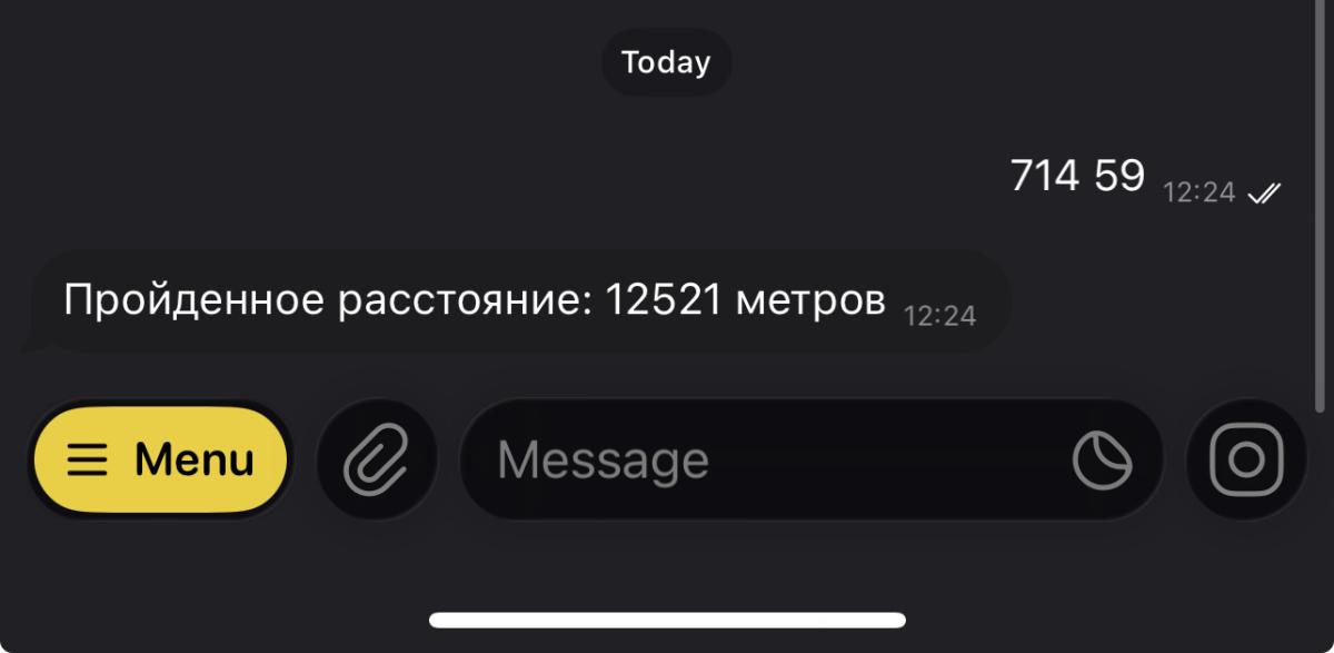 | - | 7633 | Пройдено 7633 метра(ов) | 13.12.2025 |