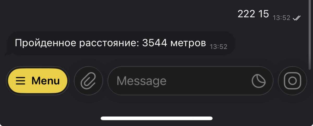 | - | 7226 | Пройдено 7226 метра(ов) | 21.12.2025 |